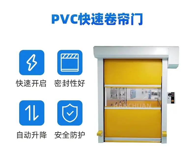PVC 快速卷帘门的核心优势,在于 “快速启闭 + 高效密封” 的双重价值。瀚川PVC 快速卷帘门采用高强度耐磨 PVC 帘布,表面经过抗撕裂、抗老化处理,哪怕是物流叉车频繁撞击也不易破损;帘布中间的透明视窗还能方便车间人员观察通道情况,避免通行碰撞。启闭速度可达 0.6-1.5m/s,相比传统卷帘门快 3-5 倍,既能减少洁净区与外界的气流互通,又能提升物料运输效率,尤其适合食品车间冷链通道、电子车间无尘通道的使用场景。